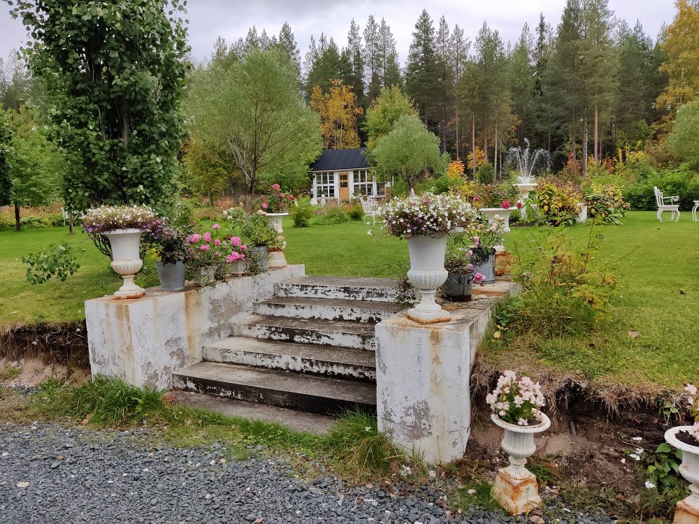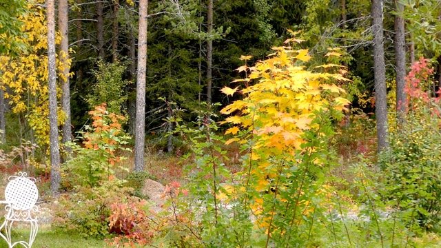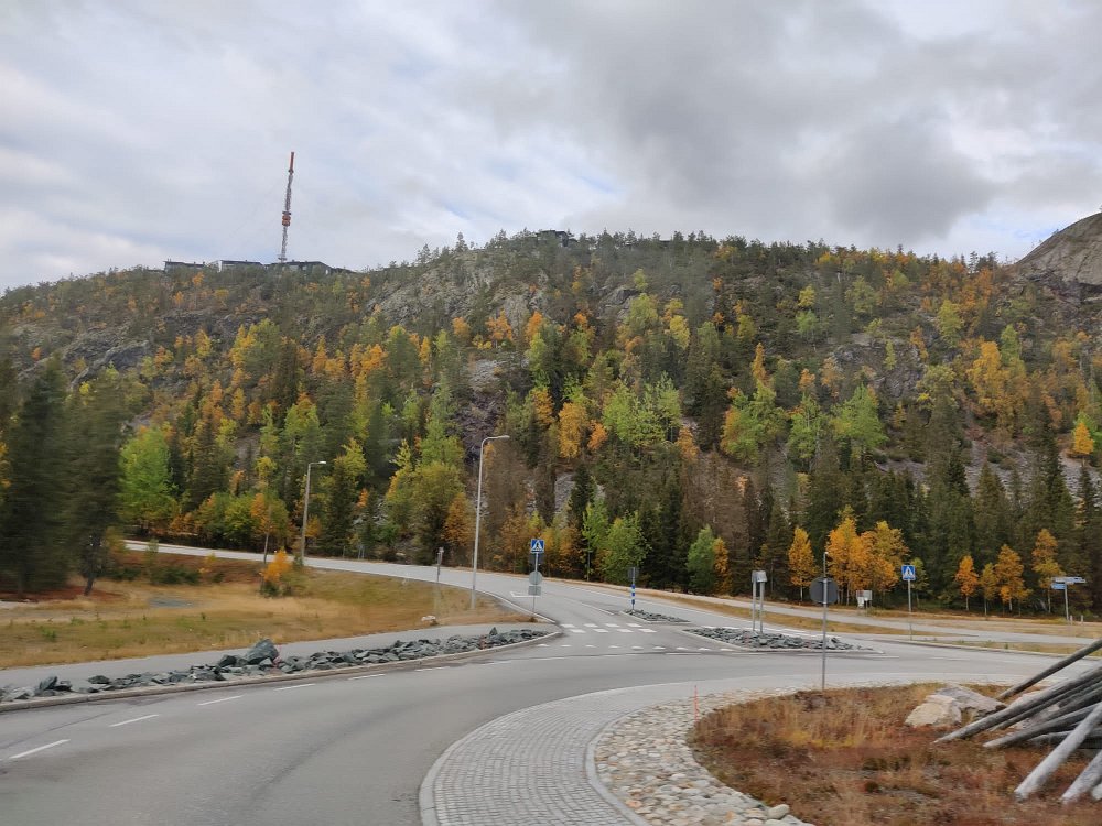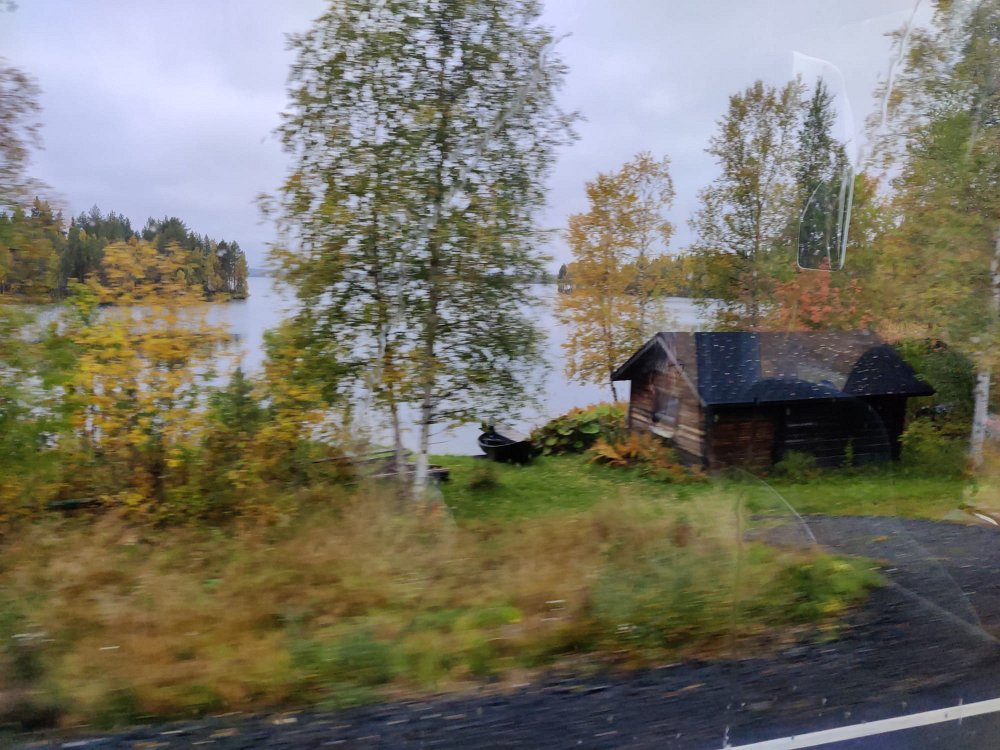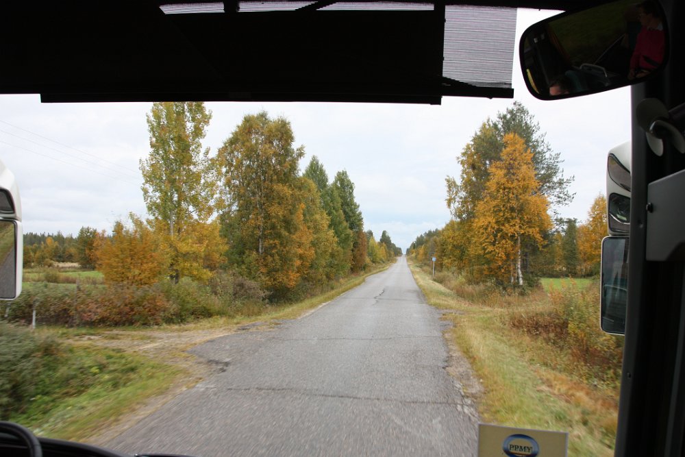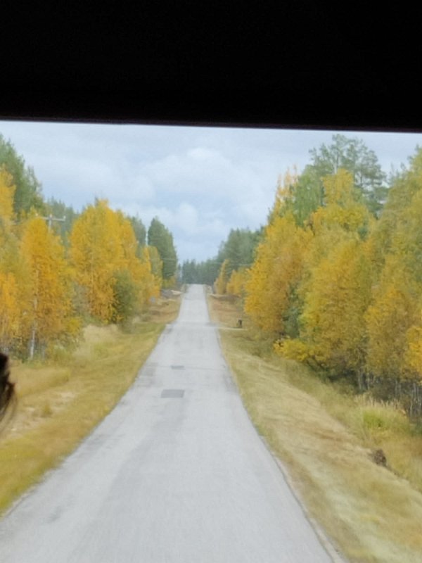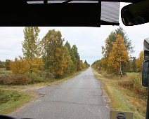 Tiet Posiolla olivat kapeita ja etelän tiekunnostusrahat eivät yllä tänne saakka. Koivut näyttävästi ruskan väreissä.
