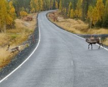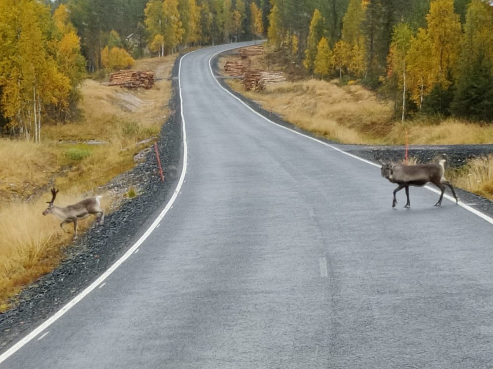Porot pyrkivät tielle kesäisin hyttysiä pakoon, syksyllä tien varsilla on runsaasti syötävää.